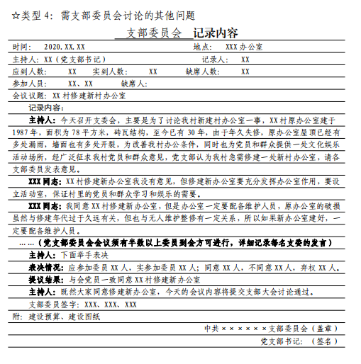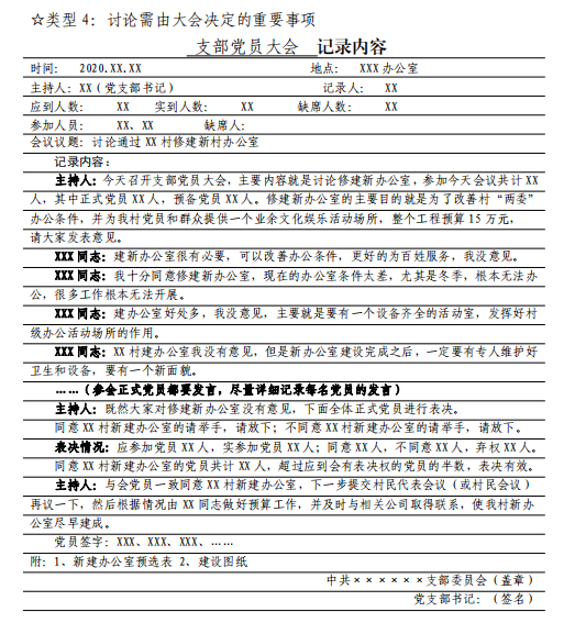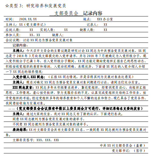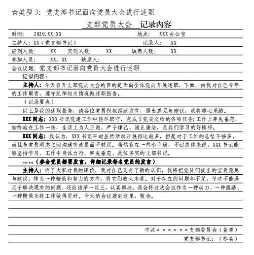 3 党支部组织生活会会议记录要求及样式