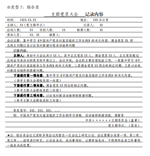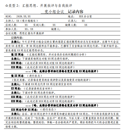 5 党小组组织生活会会议记录要求及样式
