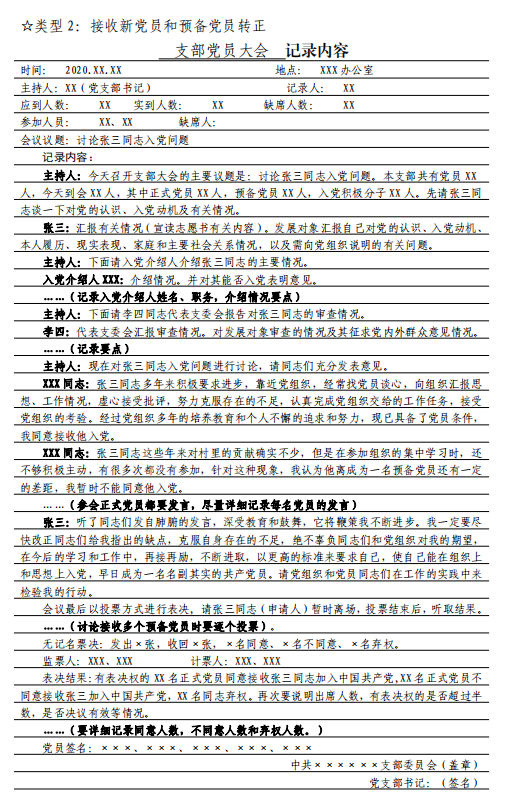 2 支部党员大会会议记录要求及样式