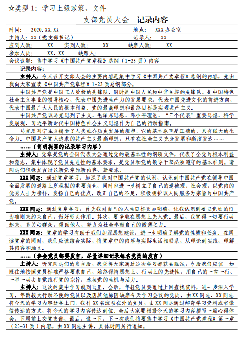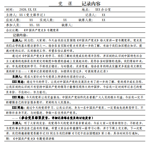 6 党课会议记录要求及样式